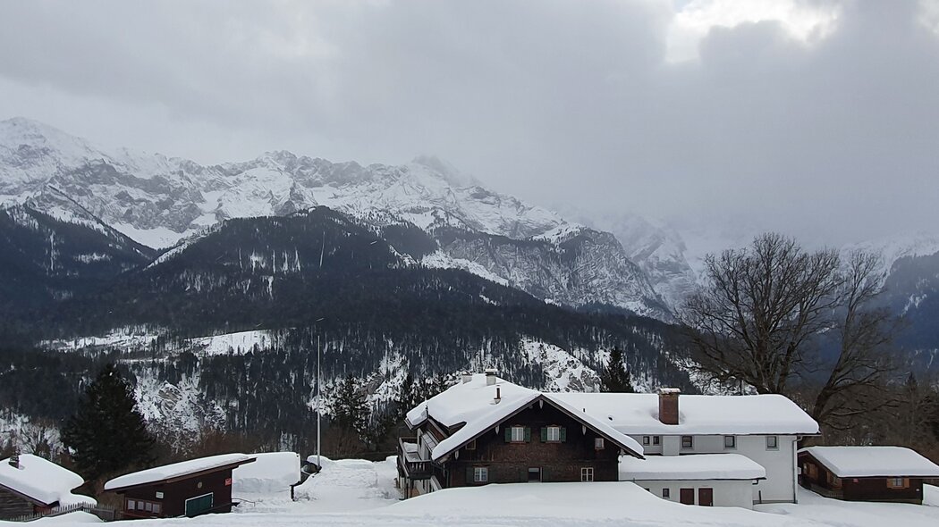 Tief eintauchen in unberührte Winterlandschaften mit traumhaften Ausblicken auf das spektakuläre Wettersteinmassiv.